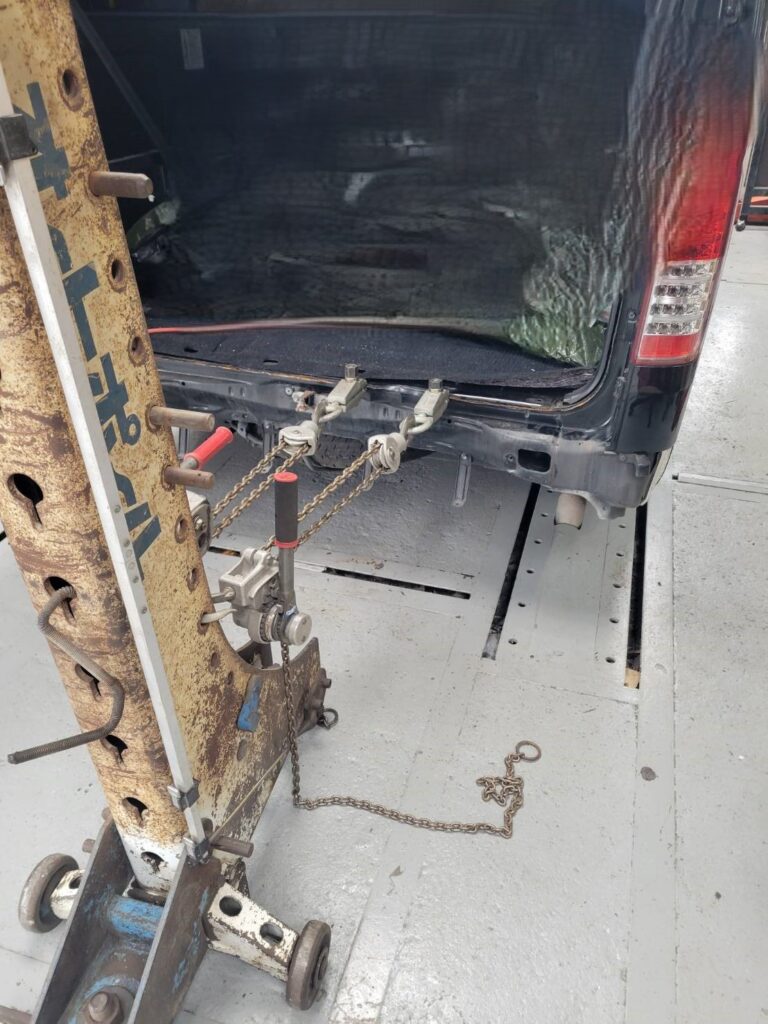 野田市山崎のお客様でお仕事でも使用しているハイエースの背面修理をさせていただきました。